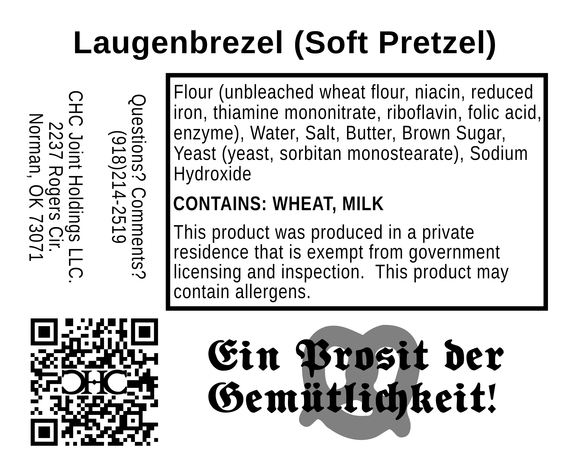 Some mornings, we wake up before the crack of dawn to bake our Laugenbrezel Soft Pretzels. These are traditional German pretzels made the old fashioned way. Each pretzel is rolled out the night before and cooked right before the farmer's market. These only stay fresh for a few hours, so grab them quick. If you don't intend to eat it immediately, freeze it to keep it fresh. We only make small batches of these, come early to get yours!.