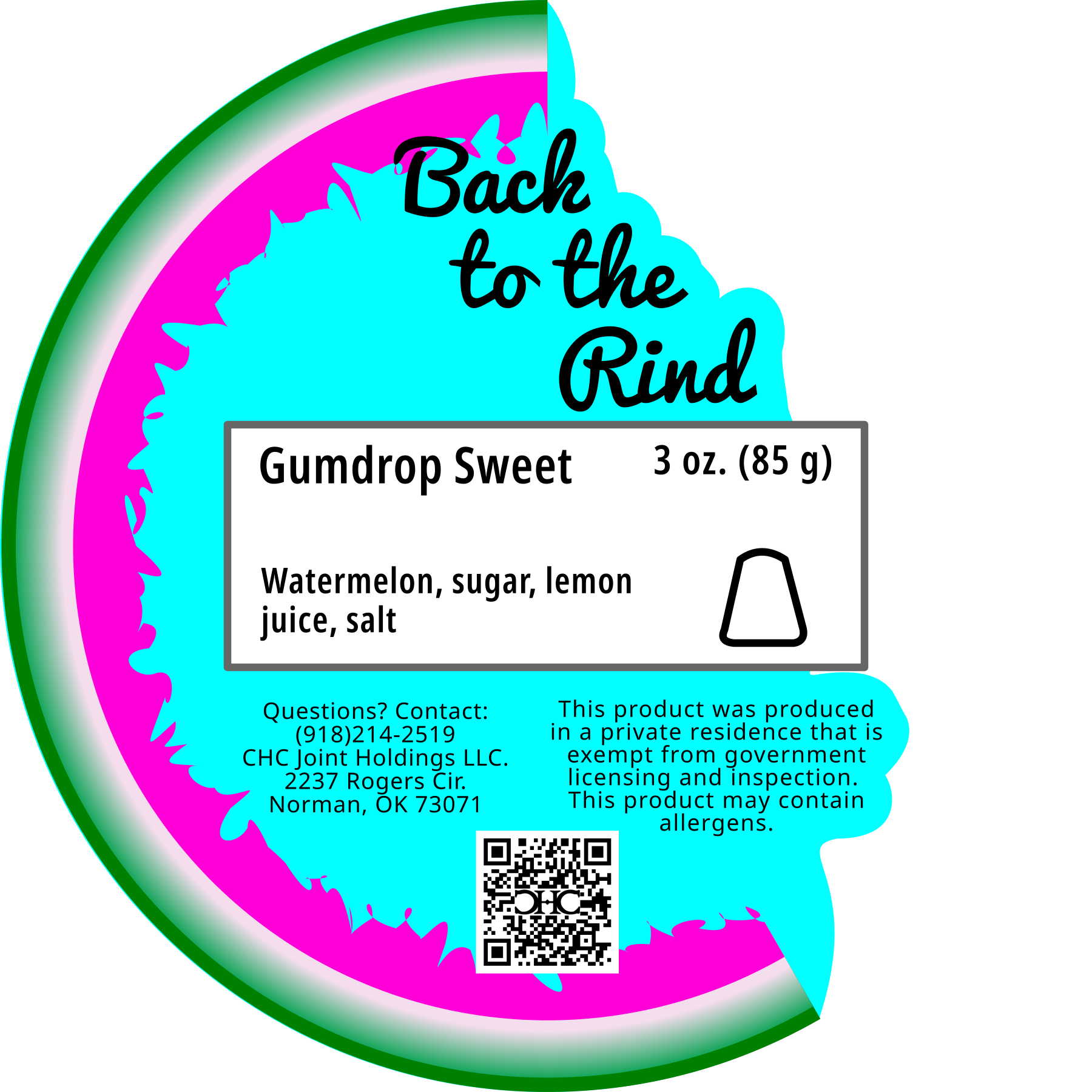 This is our Back to the Rind Gumdrop Sweet watermelon candy. This is texture variation of our Classic Chew dehydrated fruit. By altering the salt-sugar-dehydration process chain, we achieved a candy with the same sweetness as the Classic Chew but with a texture closer to a gumdrop. You can really sink your teeth into this one.